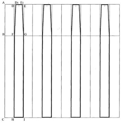 BF = FG = ширина складки на уровне линии бедер = (обхват бедер (Об ) + прибавка ) / количество складок.
